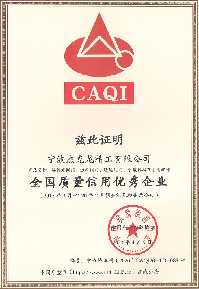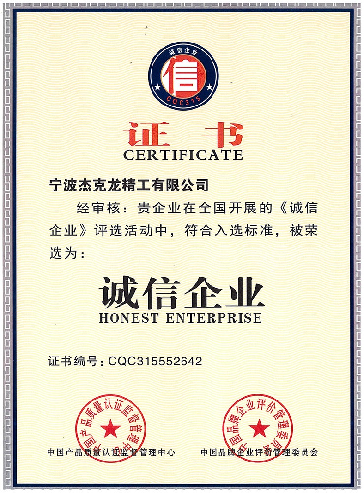 2018年11月8日,杰克龍精工公司正式獲得由浙江制造國際認證聯盟和杭州漢德質量認證服務有限公司聯合簽發的《浙江制造認證證書》。